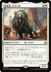 | 初祖牙、アラーボ Arahbo, the First Fang | ![]() | 5.5 | 猫とシナジーするレアカードであるが、単体ではコモンに劣る可能性もある。猫カードをある程度入れているデッキで採用したい。 | 白 | 3 | レア | 2 | 2 | クリーチャー | 猫, アバター | 伝説 | - |