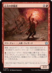 | 炎跡のフェニックス Flamewake Phoenix | ![]() | 7 | パワー4以上がいる限り無限に蘇生できる。攻撃が強制だが、飛行を持ち、さらに赤にはコンバットトリックも多いため、他の色に比べるとデメリットにはなりづらい。 | 赤 | 3 | レア | 2 | 2 | クリーチャー | フェニックス | - | 飛行, 速攻 |