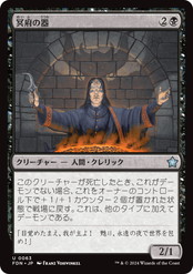 | 深淵の収穫者 Abyssal Harvester | ![]() | 7 | ユニークな蘇生能力を持つシステムクリーチャーである。即除去が必須のカードといえる。自分・相手問わず、このターンに墓地に置かれたクリーチャーのコピーを生成できる。ただし、実質トークンは1枚までという成約があるイメージ。インスタントタイミングで起動可能なため、実は[大祖始]もコピーできるが…。 | 黒 | 3 | レア | 3 | 2 | クリーチャー | デーモン, 邪術師 | - | - |