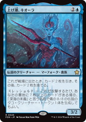 | 上げ潮、キオーラ Kiora, the Rising Tide | ![]() | 7 | スレッショルドが強力なのは自明だが、シンプルに2枚のリクルートも序盤から強力である。序盤から終盤まで活躍する安定のレアだが、除去耐性は低い。 | 青 | 3 | レア | 3 | 2 | クリーチャー | マーフォーク, 貴族 | 伝説 | スレッショルド |
