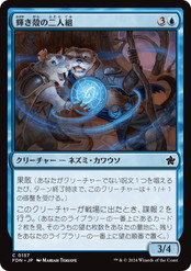 | 輝き殻の二人組 Lightshell Duo | ![]() | 4 | 青 | 4 | コモン | 3 | 4 | クリーチャー | ネズミ, カワウソ | - | 果敢, 諜報 | |