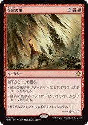 | 金屑の嵐 Slagstorm | ![]() | 5.5 | 赤はタフネスが高いクリーチャー自体は少ないため、自分のクリーチャーだけを活かす使い方は難しい。逆に緑相手の場合は機能しづらい場合もあるため、自分のデッキ構成と要相談したいところ。 本環境には全体除去のレアが多いため、中級者以上の方であれば、ある程度の警戒は行っておきたい。 | 赤 | 3 | レア | ソーサリー | - | - | - | ||