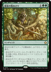 | 森林の物あさり Sylvan Scavenging | ![]() | 7 | ボムな置物。3/3トークンを毎ターン生成できれば、勝てる。パワー4以上のクリーチャーが1体以上いる状況を作れるように立ち回りたい。 | 緑 | 3 | レア | エンチャント | - | - | - | ||
