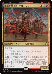 | 「強襲」を中心に、毎ターン攻撃をしかける攻撃的なデッキとなり、速めの展開を狙うべきデッキとなるでしょう。「強襲」を狙った際に確実に誘発できるよう、可能な限り毎ターン攻撃できる状況を維持することが重要です! 毎ターンの攻撃には、除去カードを積むことが簡単な回答になりますが、他にも攻撃時に有効なコンバットトリックのカードを仕込むことも重要でしょう。画像には乗せていませんが、威迫や飛行との相性は当然、抜群です。 攻撃的なデッキであるため、ブロック主体の防戦となるとあまり勝ち目がありません。除去カードは、クロックを簡単に崩されてしまう、相手の絆魂持ちクリーチャーや、大型クリーチャーに確実に決めていきたいですね。 攻撃的なデッキということで、シンプルに思えますが、意外とデッキ構築の難易度が難しいアーキタイプです。強襲持ちのクリーチャー、強襲を支援する攻撃用クリーチャー、除去カードなどのバランスの難しさや、逆に攻撃的なデッキに合わないカードを入れない決断も必要です。 | 生け贄や、アーティファクトを利用したアーキタイプとなる傾向がある。 |