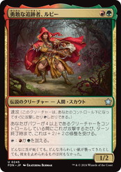| 「パワー4以上」のクリーチャーを中心に、ミッドレンジ的な展開を狙う、中速くらいのデッキとなるでしょう。また、トランプルとの相性が最も良いデッキといえます。パワーが高いので高速展開も全然あるのですが、攻撃的なクリーチャーは3~5マナに集中しており、相手の除去や、ブロッカーが十分だと速度が急激に落ちます。 なお、「パワー4以上」のシナジーというのはそこまで多くは無く、デッキ構成の際に、無理に「強力なカードだが、パワーが低いから入れない」といったことはしなくて良いでしょう。逆にいえば、3~5マナ帯のクリーチャーの質が低いと、単調なデッキとなる可能性は高いです。とはいえリミテッドですので、それでも普通ではあるのですが…。 デッキのシナジーがアンコモン帯のカード中心となっており、アンコモンのカード次第では、少し厳しいアーキタイプとなる可能性はあります。シナジーの薄いデッキ構成となる場合は、速度を重視して、赤緑の攻撃的なクリーチャーと、赤や緑の優秀な軽量除去を中心に構成していきましょう。 | パワーを参照するアーキタイプとなることが多い。マナクリーチャーや、格闘系の除去能力を持つクリーチャーが収録されることが多い。 |